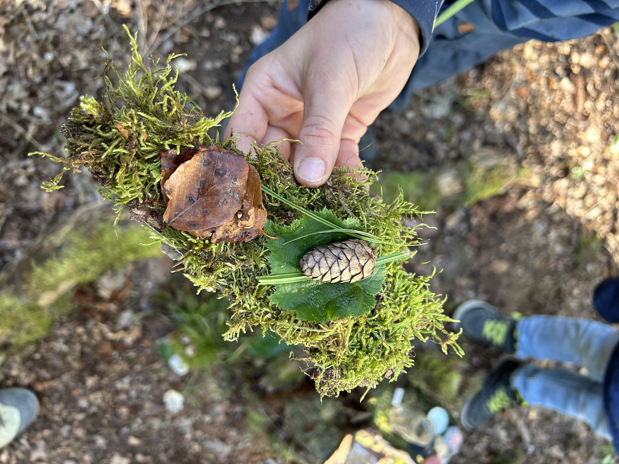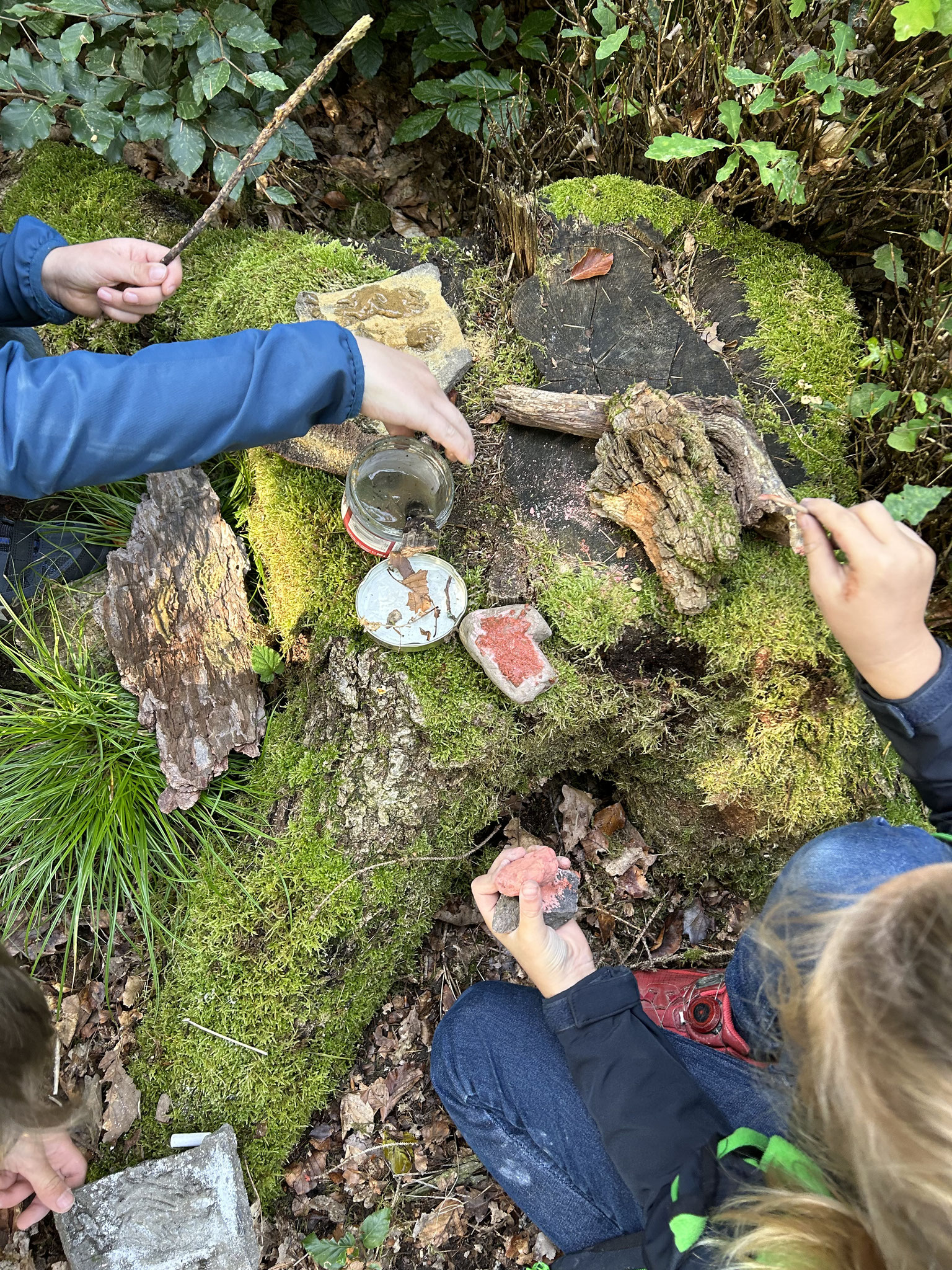 Außerdem haben die Kinder gelernt, wie man Farben aus natürlichen Materialien gewinnen kann. Hier konnte der Kreativität freien Lauf gelassen werden und es entstanden wunderbare Plastiken aus Naturmaterialien.
